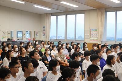 25日に、生徒と保護者がいっしょに講話を聞き、いのちについて考えるしこたんセミナーが実施されました。
