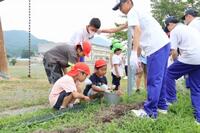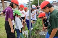 また、秋の地域を彩るコスモスの種植えをこども園や小学生と一緒に行いました。
